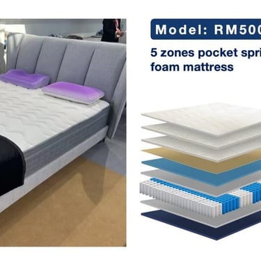 5-Zones Pocket Spring System: This advanced technology helps the mattress distribute body pressure across different zones, precisely contouring and supporting key areas like your shoulders, back, and hips. This keeps your spine's natural curve aligned throughout the night, minimizing aches and pains.